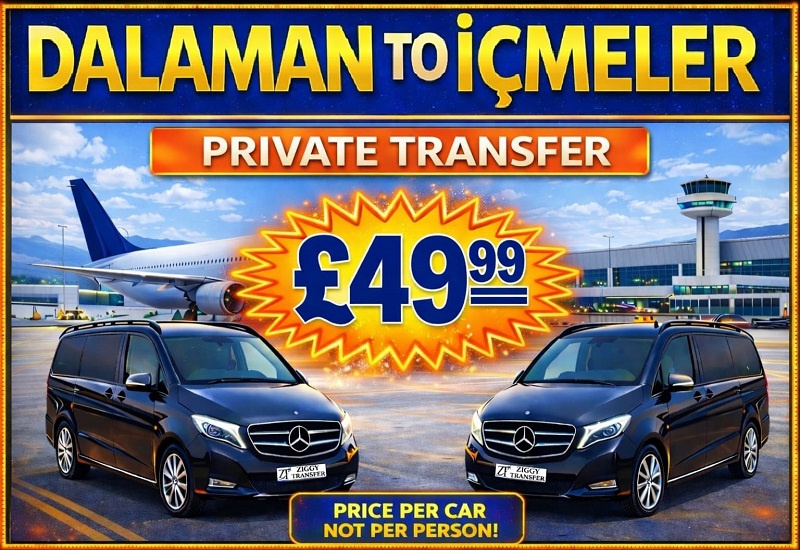 Looking for a reliable Dalaman Airport transfer to İçmeler? We provide private, safe and luxury airport transfers from Dalaman Airport to İçmeler with professional drivers and comfortable VIP vehicles.Our service is not a regular taxi service. We operate private Dalaman airport transfers using luxury vehicles such as Mercedes Vito, Mercedes V-Class or similar VIP vehicles, ensuring a comfortable and stress-free journey.Unlike taxis, our Dalaman to İçmeler transfer price is per vehicle, not per person, making it ideal for families or groups travelling together.The distance from Dalaman Airport to İçmeler is approximately 98 km (62 miles) and the journey takes about 1 hour and 30 minutes, depending on traffic conditions.Our private airport transfer from Dalaman to İçmeler is normally non-stop, but if you would like to stop briefly for a toilet break or a quick smoke, our driver will be happy to assist. If you are looking for a safe, comfortable and affordable Dalaman Airport to İçmeler transfer, our company offers one of the most reliable airport transfer services in the region.